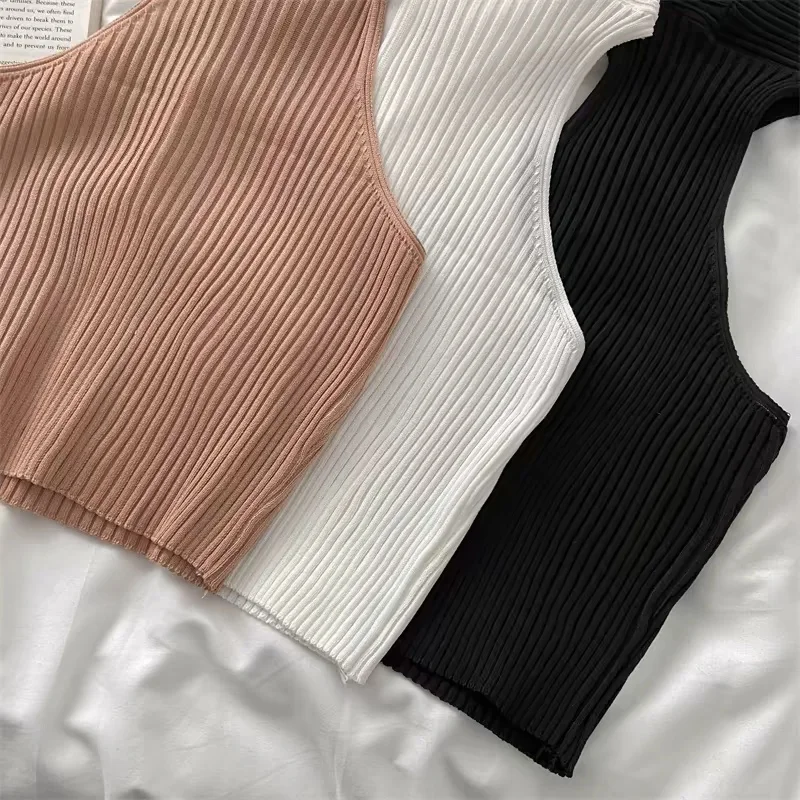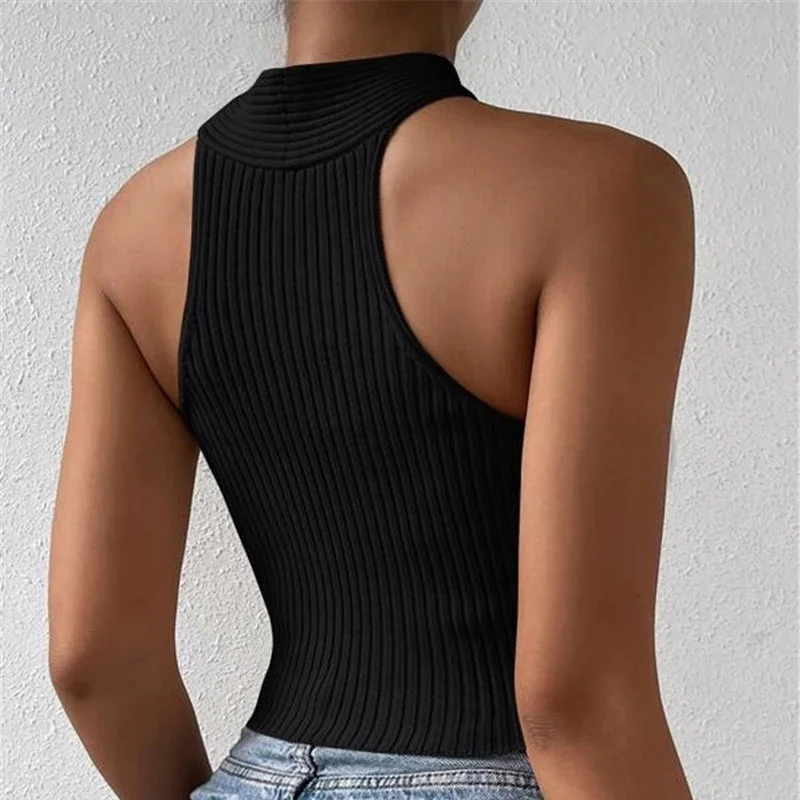 Women 2025 Summer Knit Cross Neck Crop Tops Sexy Slim Solid Backless Sleeveless Tank Tops Elastic Rib Design Underwear Camisoles