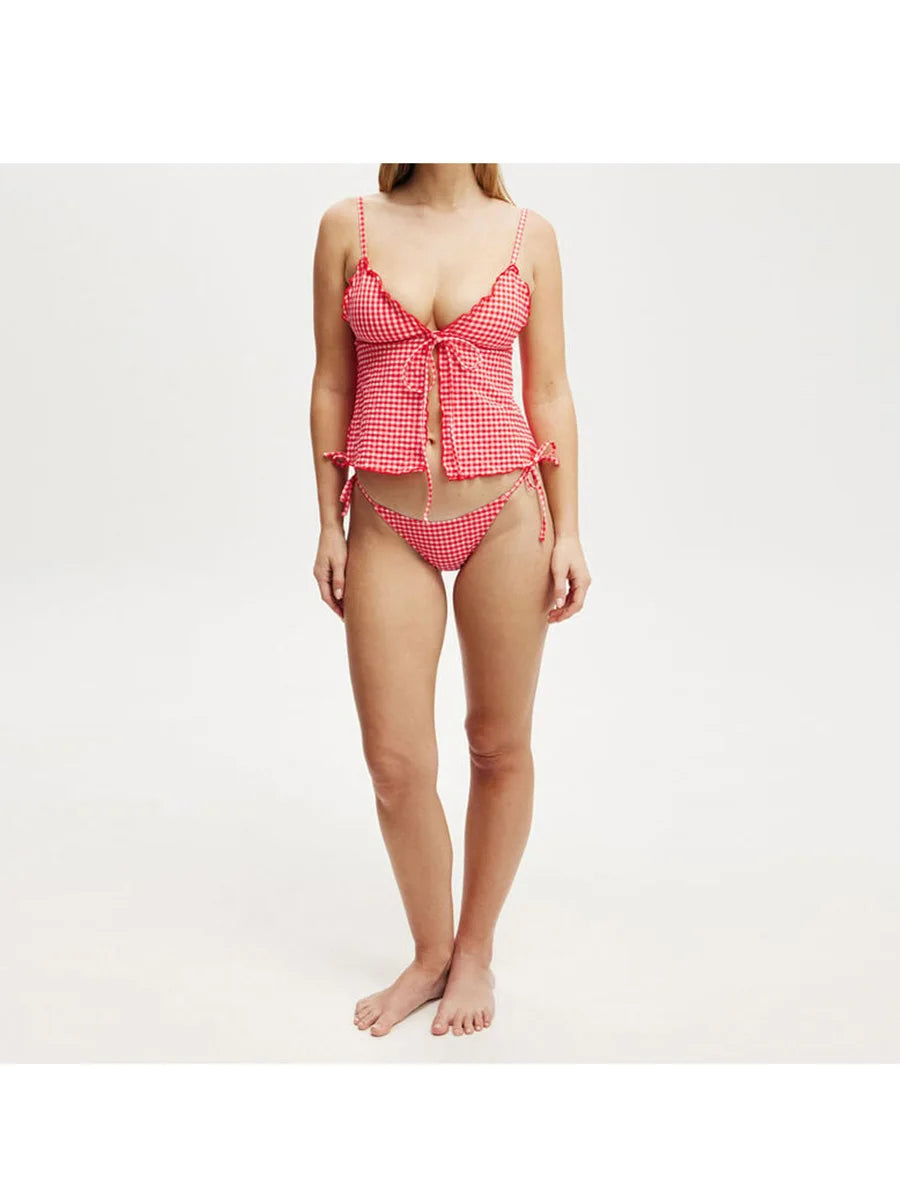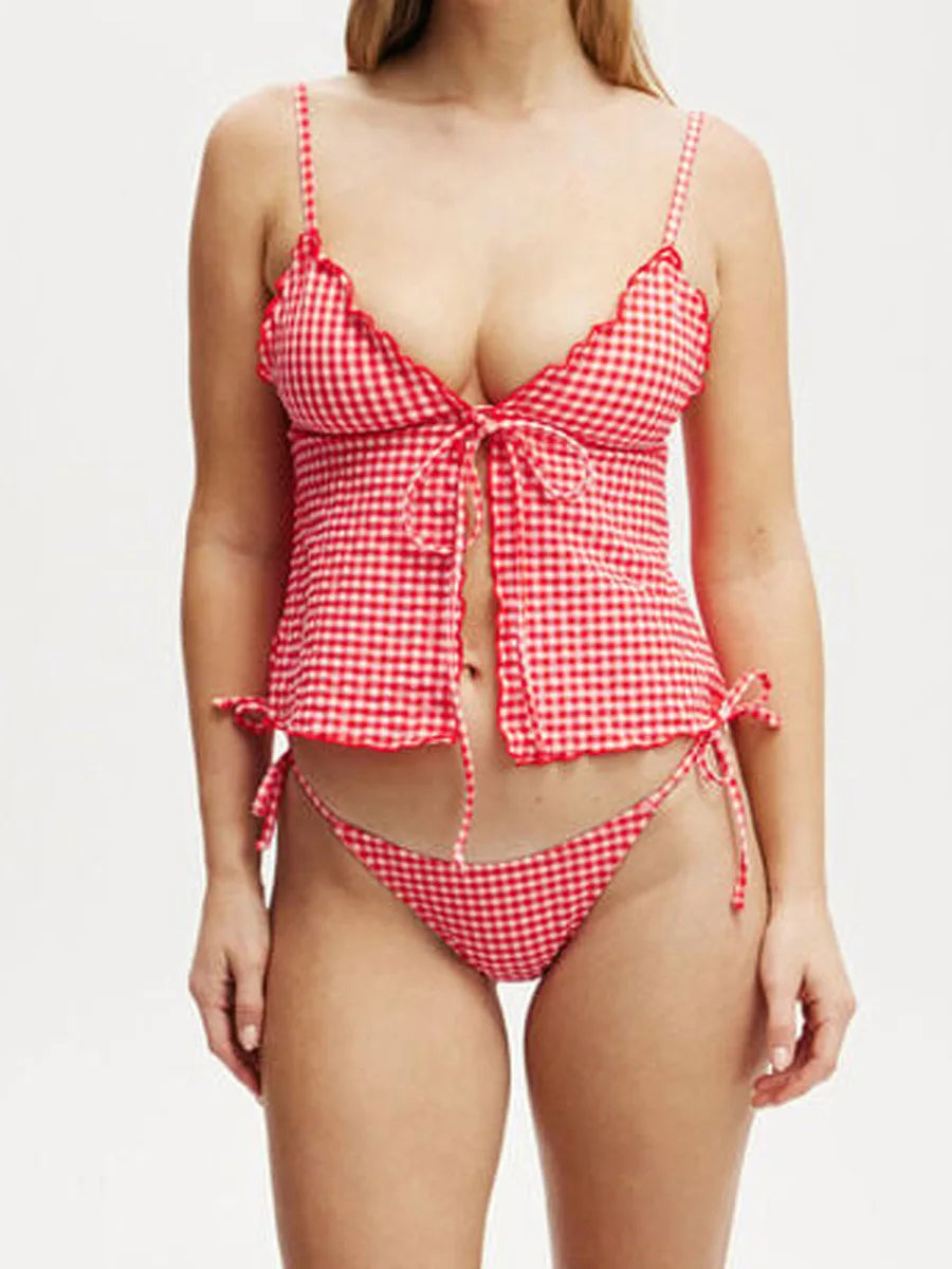 Hirigin Plaid Sleeveless Cami Top With Front Tie