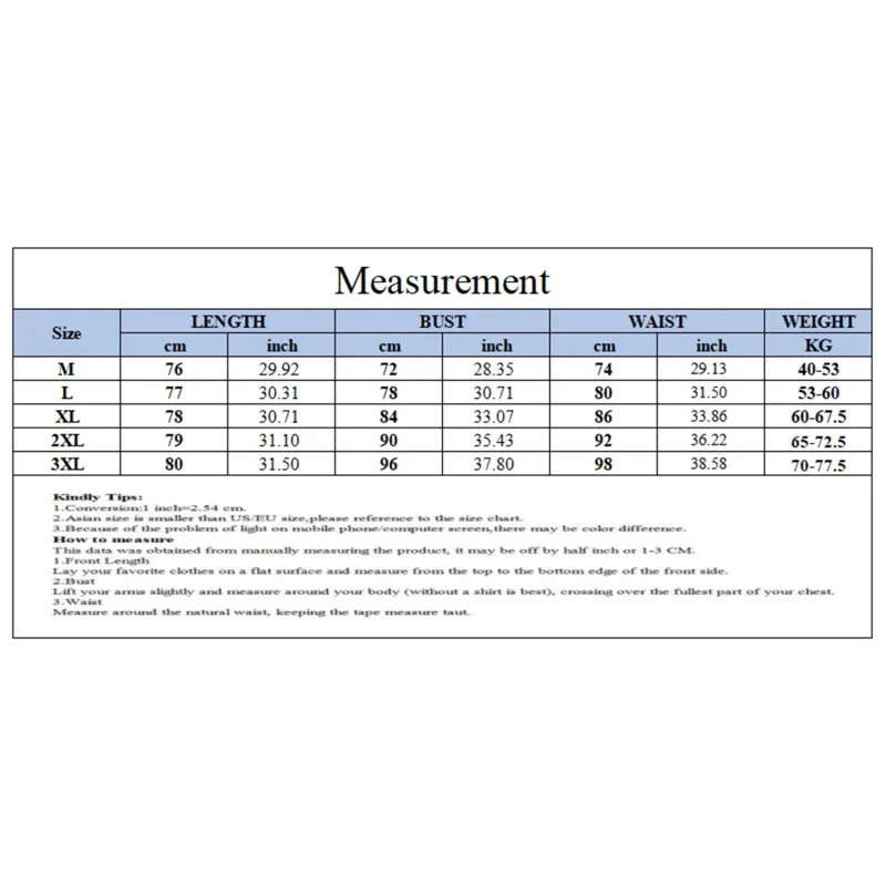 Size 3XL:Length:80cm,Bust:96cm,Waist:98cm,suitable for:70-77.5kg,