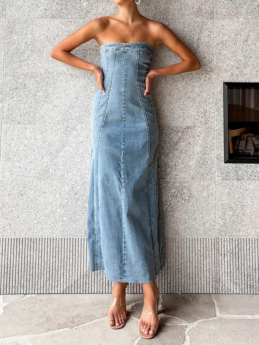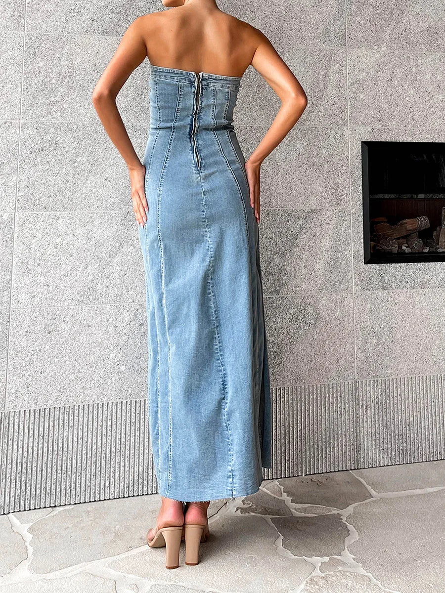 Hirigin Women Strapless Velvet Dress Backless Zipper Slit Perfect For Club Party
